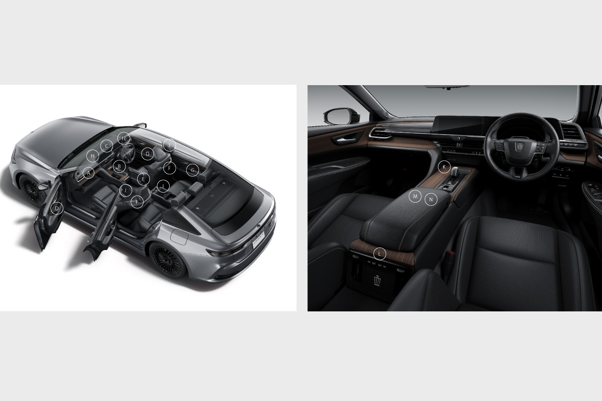 長年にわたり楽器づくりに取り組んできた音の匠たちの、研ぎ澄まされた感性、卓越した技術をオーディオ開発に導入。アーティストが奏でた音を、そのままお客様へお届けすることを目指してスピーカーを新開発しました。繊細な音の立ち上がりから余韻までリアルに再現するために、中高音域を担うスピーカーの振動板には新たに「ZYLON®」を採用。低音から高音までバランスよく響き、一つひとつの楽器の音がしっかりと聴こえてきます。また、車両設計の段階から3Dモデルを活用して車載音響設計の匠がチューニングを行い、より良い音づくりのために専用部材をドアに追加するなど妥協なく本物の音を追求。生演奏を彷彿とさせる心地よいリスニング空間を実現しています。