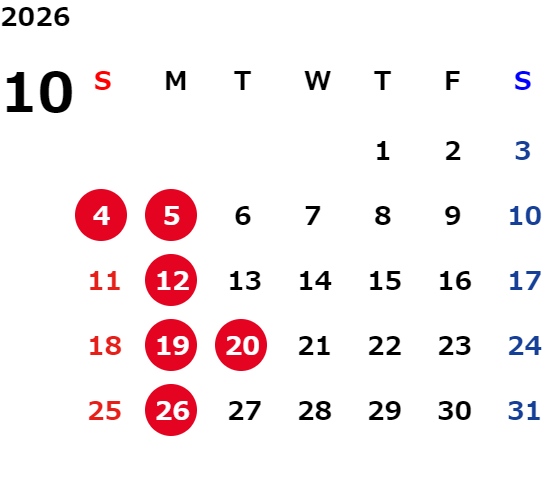 月曜、第1日曜、第3・5火曜、祝日