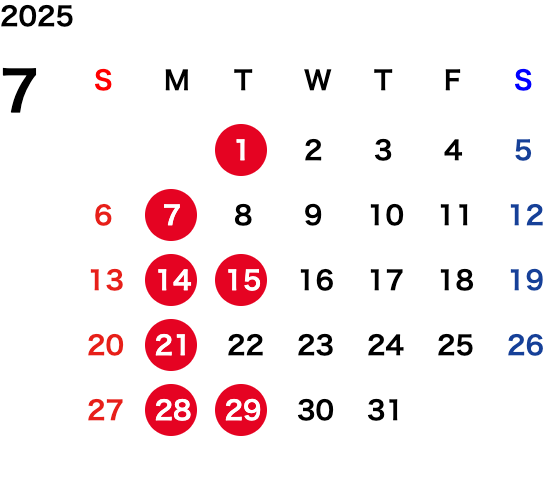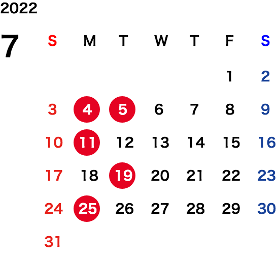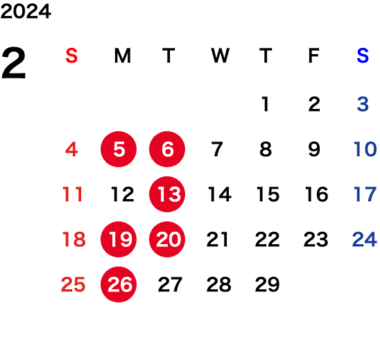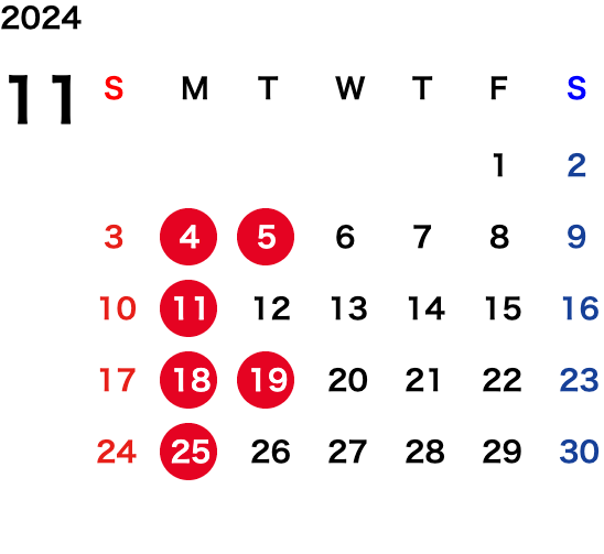 毎週月曜日、毎月第1・第3・第5火曜日、祝日