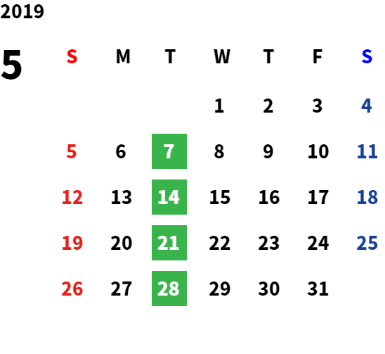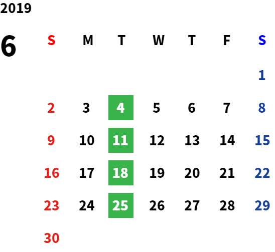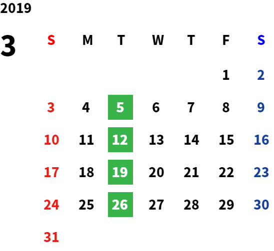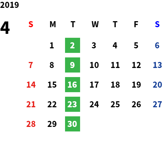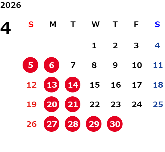 毎週月曜日、毎月第1・第3・第5火曜日、祝日